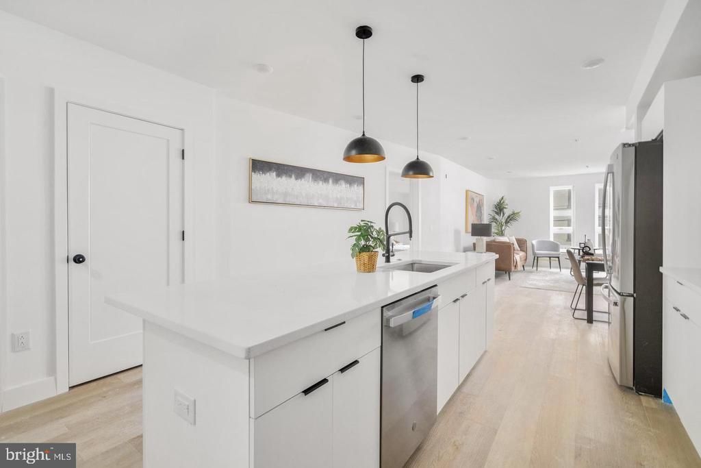Introducing Fifteen40 Flats a newly constructed luxury boutique condominium in the heart of Fishtown. Enjoy the privacy and security of a gated entrance off vibrant Frankford Avenue and the ease of an ELEVATOR that takes you directly to your penthouse-level home, Unit 4C a spacious 2-BD | 2.5-BA | CORNER RESIDENCE designed for modern living. Step inside to find wide-plank engineered hardwood floors leading you through a bright, open-concept living and dining area bathed in natural light. The European-inspired kitchen features custom contemporary cabinetry, quartz countertops, a sleek tile backsplash, and premium stainless-steel appliances a perfect blend of style and function. A convenient powder room completes this level. Both bedrooms are generously sized and include spa-like en-suite baths with custom tile finishes, while a laundry closet with full-size front-loading washer and dryer adds everyday convenience. Ride the ELEVATOR up ONE floor to the rooftop deck and take in breathtaking city skyline views the perfect spot to relax or entertain. The rooftop also includes a large dog run, and the building offers bike storage for residents. Experience the very best of Fishtown living surrounded by Philadelphia’s top restaurants, cafés, and nightlife. With easy access to SEPTA’s Market-Frankford Line and I-95, you’ll enjoy quick commutes to Center City, University City, the airport, and beyond. Approximately 8 years left on FULL TAX ABATEMENT . Luxury, convenience, and location all waiting for you at Fifteen40 Flats.